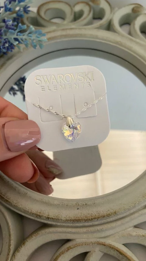 Dije corazon Swrovski con engarce de plata 925 y cadenita de plata 925 italiana